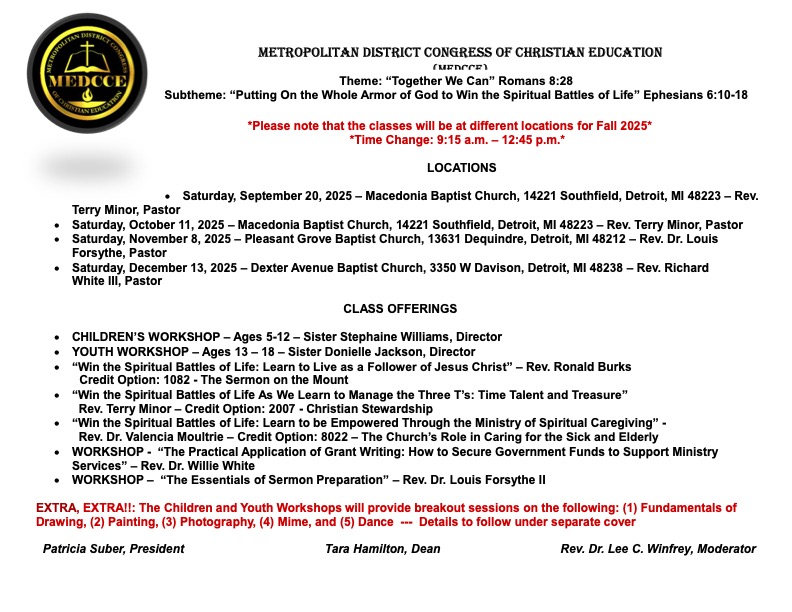 METROPOLITAN DISTRICT CONGRESS OF CHRISTIAN EDUCATION